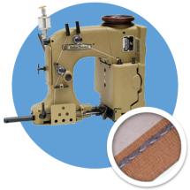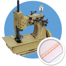 For seaming heavy weight as well as coated bags and simultaneously attaching a binding tape and Easy-Open tape (10 mm) from the top. Top and bottom feed.